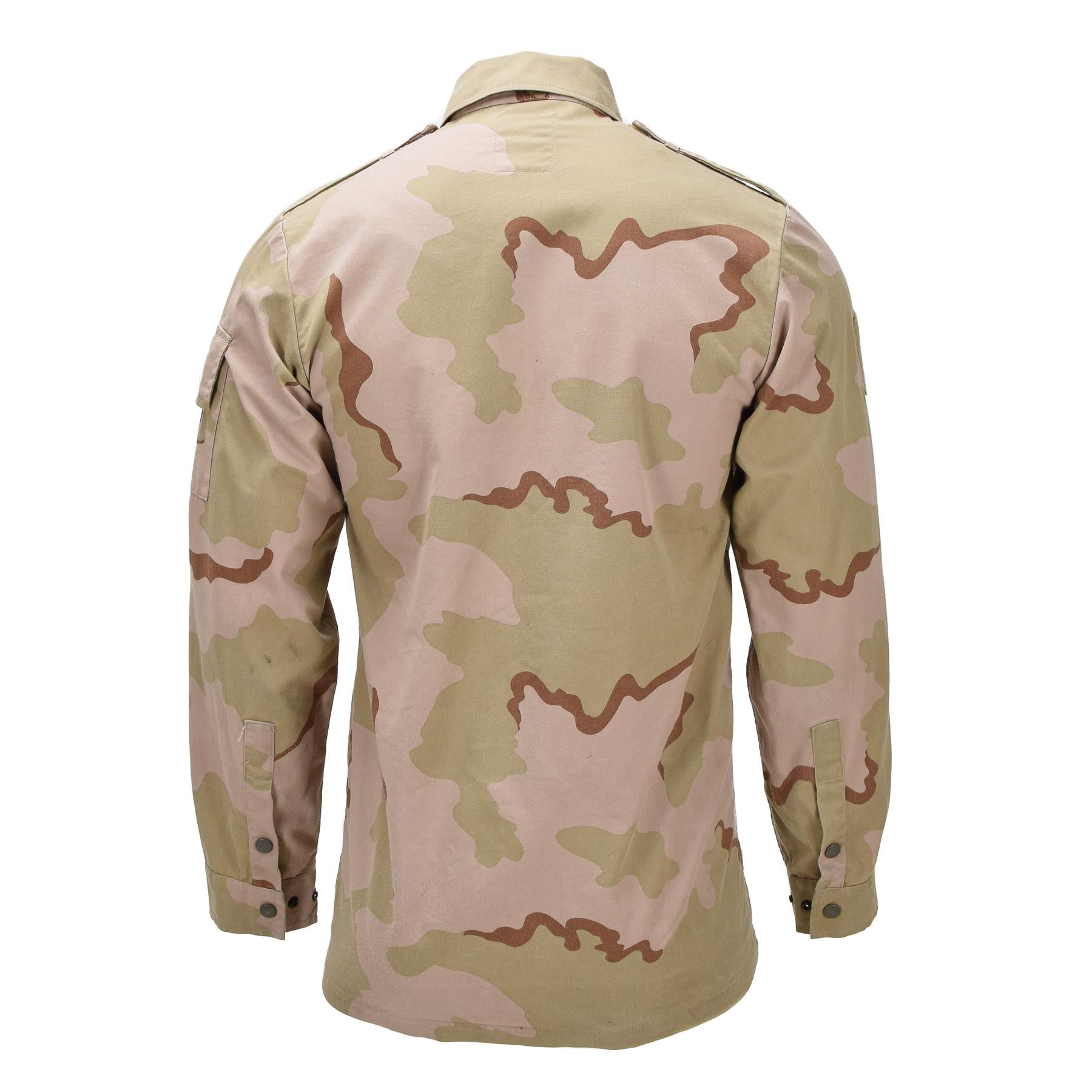Šis originalus Olandijos kariuomenės lauko švarkas yra autentiškas karinio pertekliaus gaminys, sukurtas naudoti sudėtingomis lauko sąlygomis. Modelis pasižymi klasikiniu 3-Color Desert kamufliažo raštu, skirtu sausoms ir atviroms vietovėms, todėl puikiai tinka tiek funkciniam naudojimui, tiek karinio stiliaus gerbėjams.