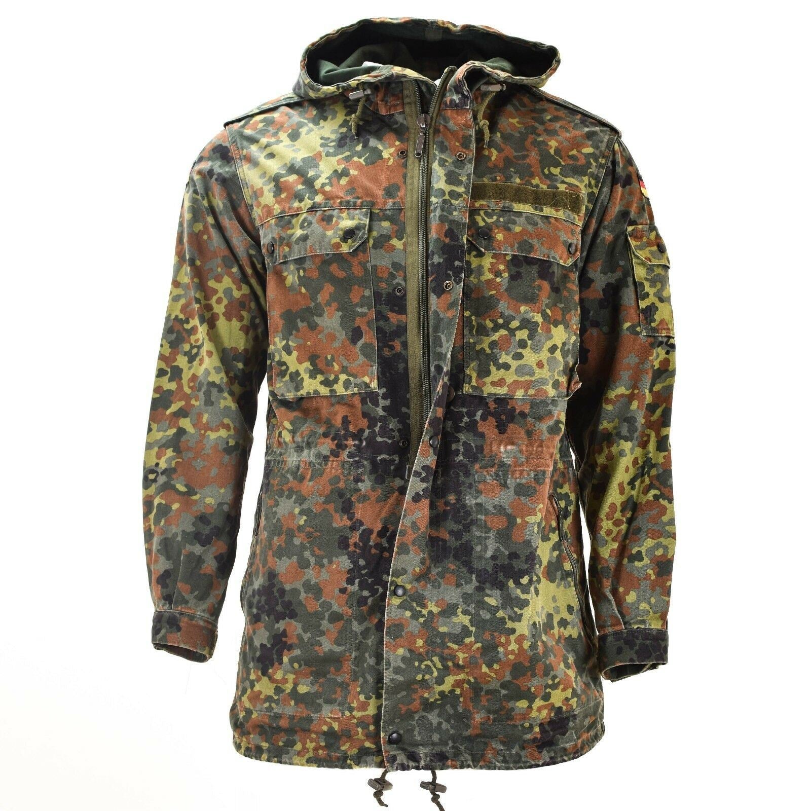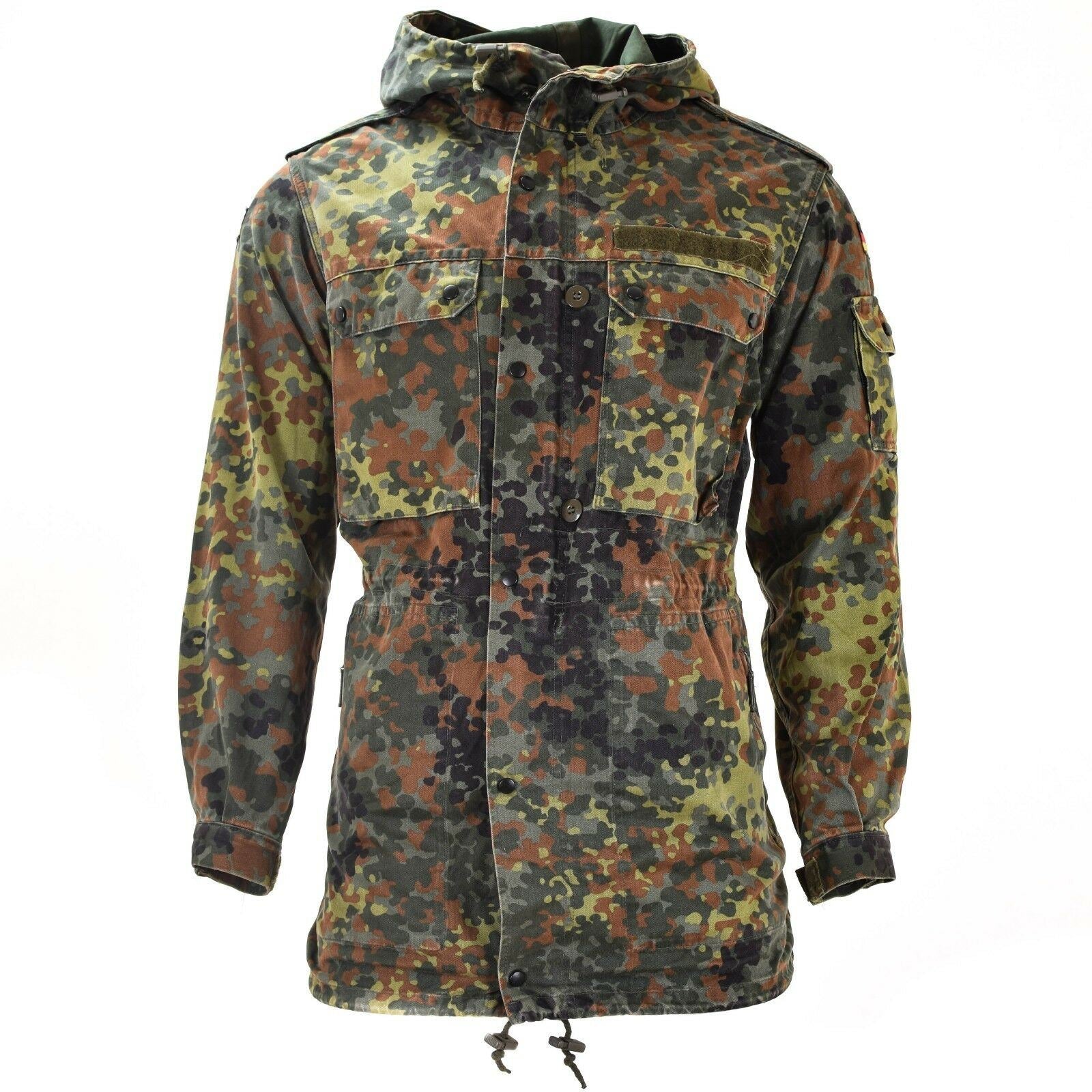 Originali Vokietijos kariuomenės striukė kitaip vadinama parka su išskirtiniu flecktarn kamufliažo raštu. Ji turi gaubtą, kuris suteikia papildomą apsaugą nuo oro sąlygų, ir reguliuojamus elementus, įskaitant juosmenį, apačią ir rankogalius, leidžiančius pritaikyti striukės prigludimą. Vokietijos kariuomenės striukėje taip pat yra dvi krūtinės kišenės, dvi šoninės kišenės ir dvi rankovių kišenės, suteikiančios daug vietos daiktams. Be to, striukėje ant rankovės yra Vokietijos vėliava, rodanti jo kilmę ir paveldą. Šis parka yra sukurta būti tiek praktiška, tiek stilinga, suteikianti šilumos ir apsaugą įvairiomis lauko sąlygomis.